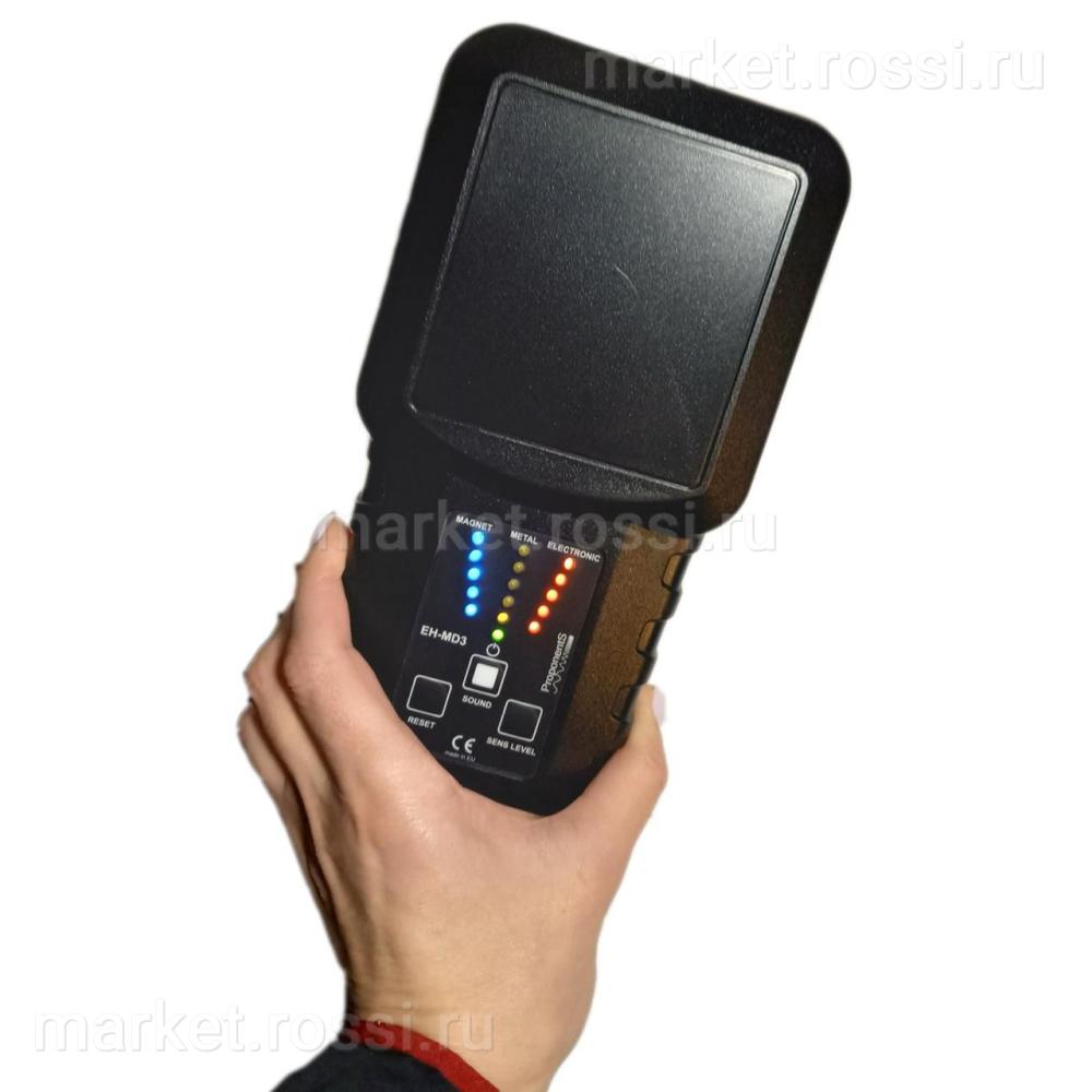 - EH-MD3 представляет собой портативный прибор, в котором детектор включенных электронных устройств совмещен с металлодетектором и детектором ферромагнитных предметов