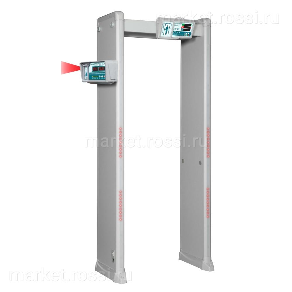 Металлодетектор стационарный арочный Блокпост РС И 6 с измерением температуры тела, 6 зон обнаружения, ширина прохода 750 мм, счётчик проходов, SD-карта, подключение ПК