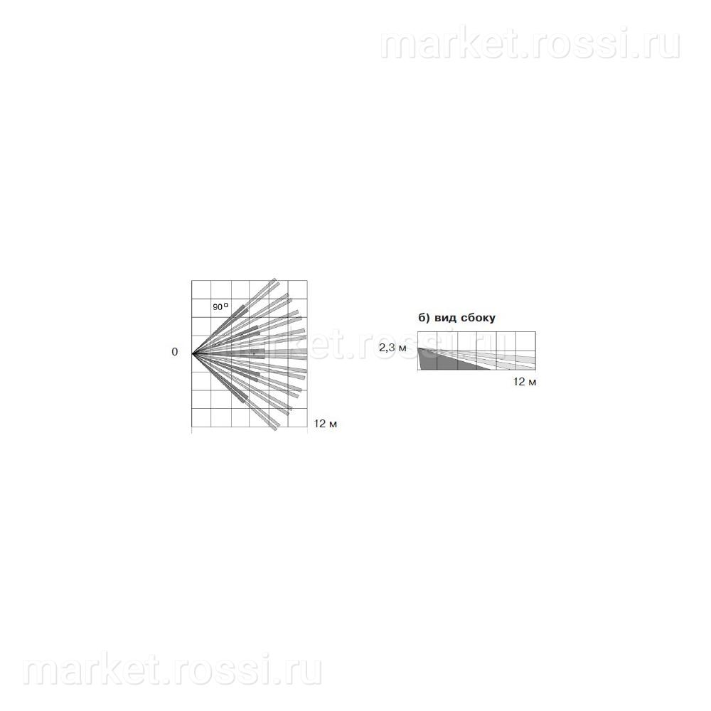 - - Угол обзора зоны обнаружения в вертикальной плоскости 90°