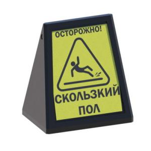 - Внутри зданий — для обозначения зон уборки, мокрого пола и ремонтных участков.