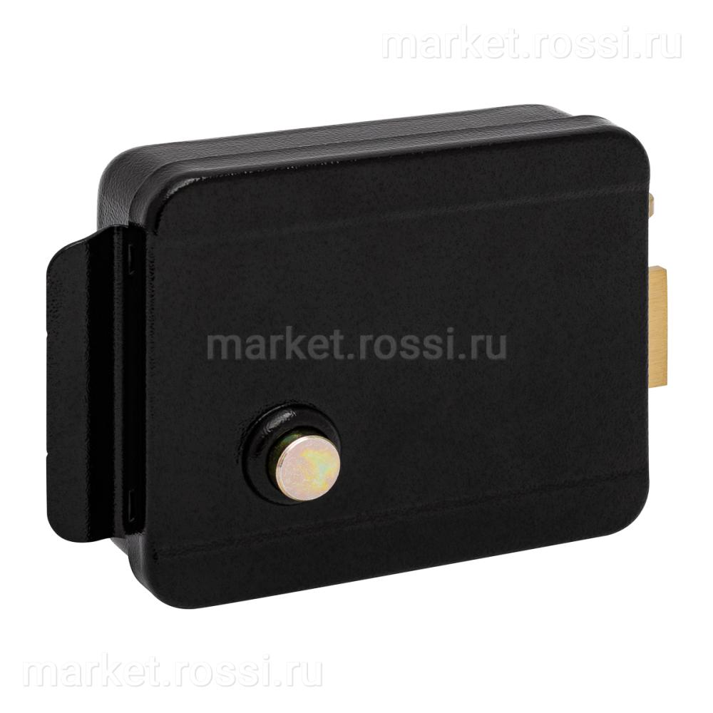 Электромеханический замок, накладной, универсальный (дверь наружу, внутрь), ролик взвода пружины,сталь,цвет черный 12В