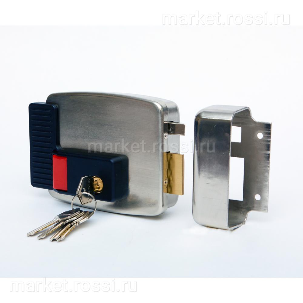 - )Открывается при подаче питания (нормально-закрытый замок)Гарантия: более 200 000 цикловСпособ установки: дверь открывается во внутреннюю правую сторонуСпособ монтажа: накладнойМатериал корпуса: никелированная стальРабочая температура: -30 +50 градусовФункция: выход по кнопке, блокировка кнопки открытия (выход по сигналу от СКУД, фиксация замка в открытом положении (свободный проход), вход по ключу из комплектаТип замка: электромеханический, накладнойМасса, кг: 1,3Размер замка: 148x107x35 мм