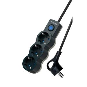 Удлинитель 3х1.5м с заземл. 10А IP20 2200Вт 220В защ. шторки ПВС 3х1 с выкл. черн. КОСМОС YKsm1.5m-3g-Z-V10A-B