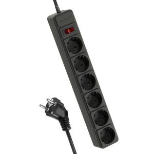 Удлинитель с сетевым фильтром 6х3м с заземл. 16А IP20 3.5кВт 3х1 с предохранителем с выкл. с индикатором сети черн. КОСМОС FKsm3m-6g(B)16A
