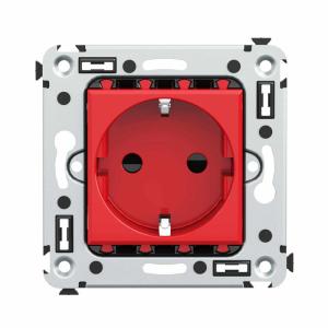 Розетка 1-м СП 2мод. Avanti "Красный квадрат" 16А IP20 2P+E защ. шторки красн. DKC 4401003