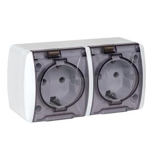 Розетка 2-м ОП Владивосток 16А IP54 с заземл. с прозр. крышкой бел. EKF EQR16-129-30-54-T