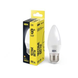 Лампа светодиодная ECO C35 9Вт свеча 3000К E27 230В IEK LLE-C35-9-230-30-E27