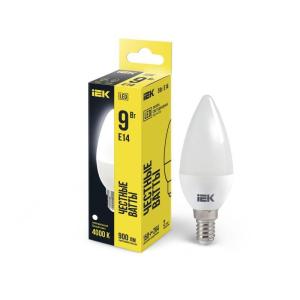 Лампа светодиодная Eco 9Вт C35 свеча 4000К нейтр. бел. E14 230В IEK LLE-C35-9-230-40-E14