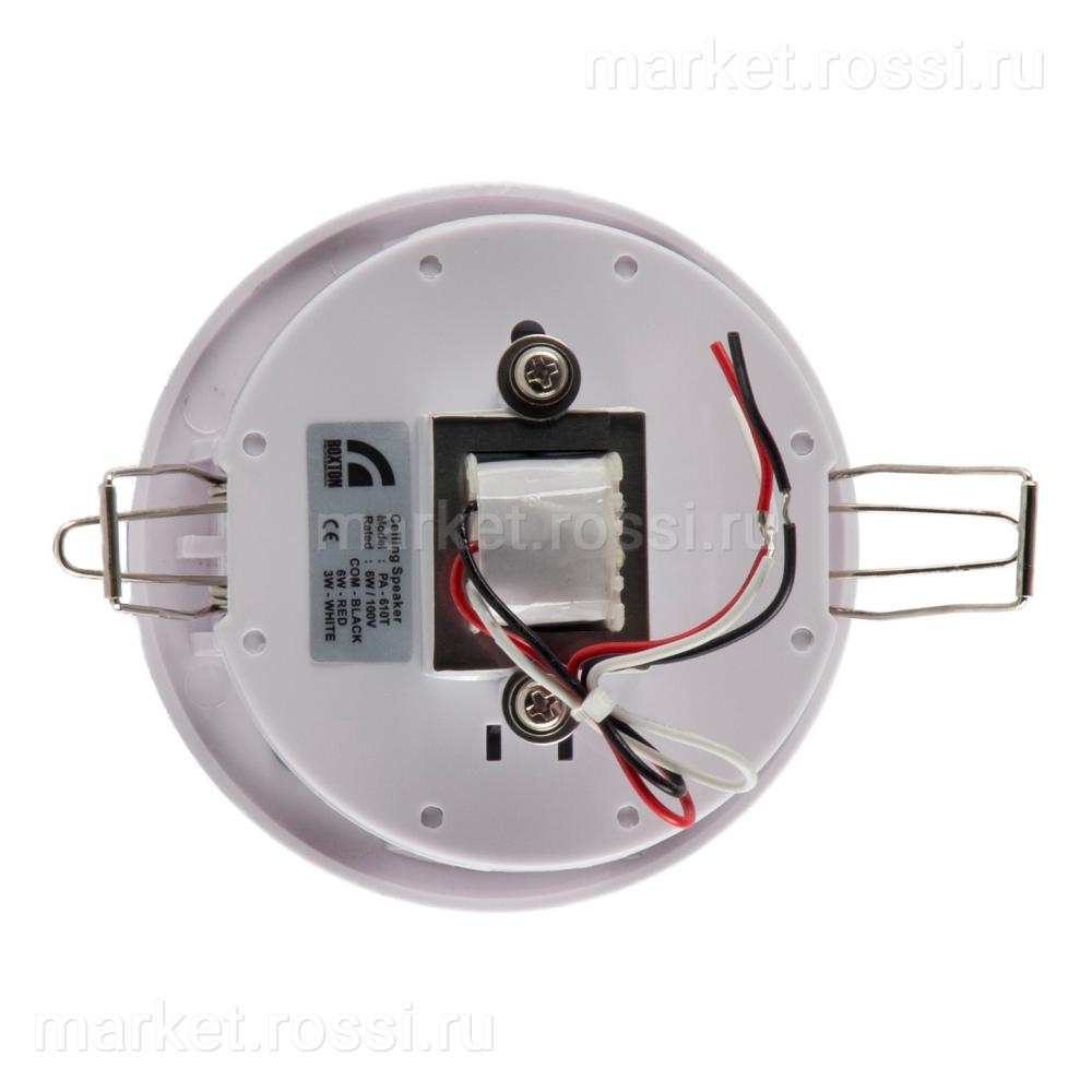 Потолочный громкоговоритель, мощность 6/3 Вт (100В), полоса частот 80 Гц-20 кГц, 90 дБ (96 дБ max), круглая решетка, пластик/металл, Ø103х80 мм, цвет белый