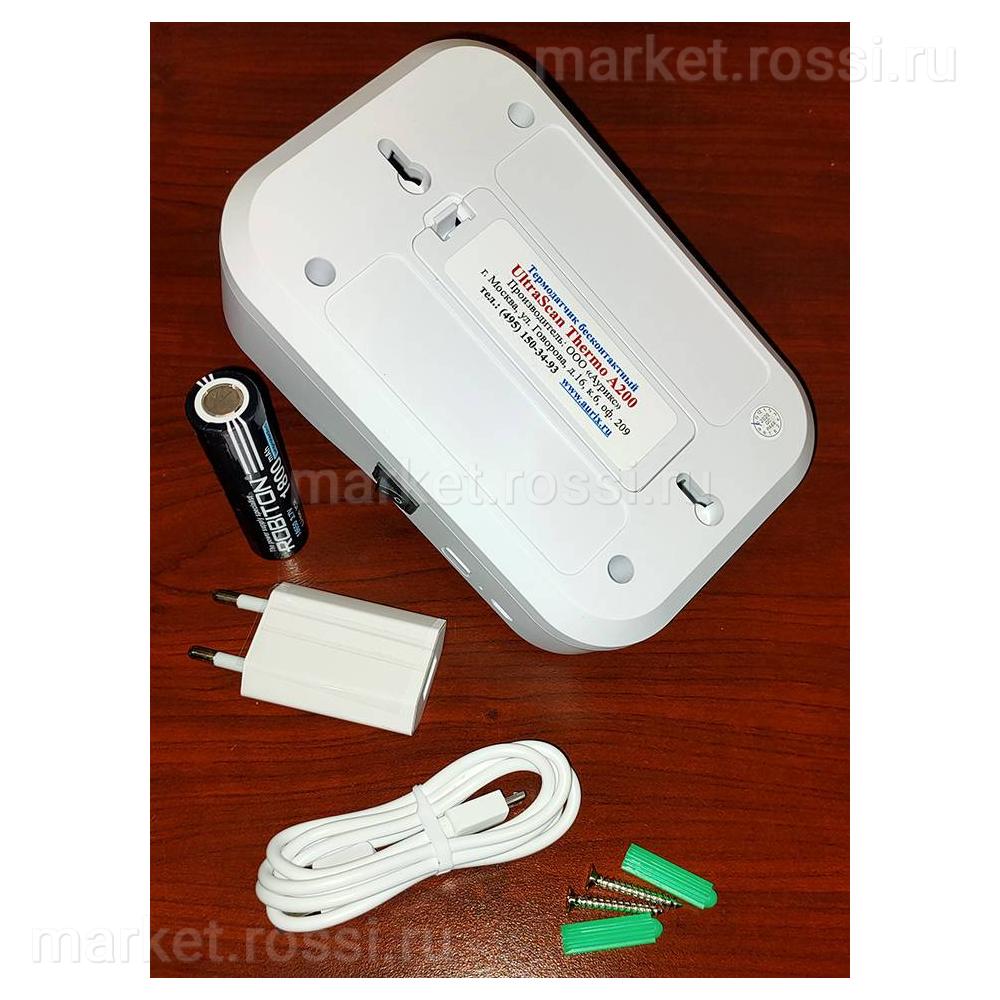 - Настенный термодатчик UltraScan Thermo A200 / Сетевой адаптер / Зарядное устройство / Аккумулятор модель 18650 / Крепеж для монтажа на стену / Скотч двухсторонний / Паспорт изделия / Сертификат соответствия / Декларация о соответствии