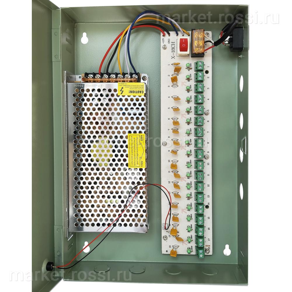 - Источник питания для систем видеонаблюдения 12В 10А 110Вт на 18 выходов