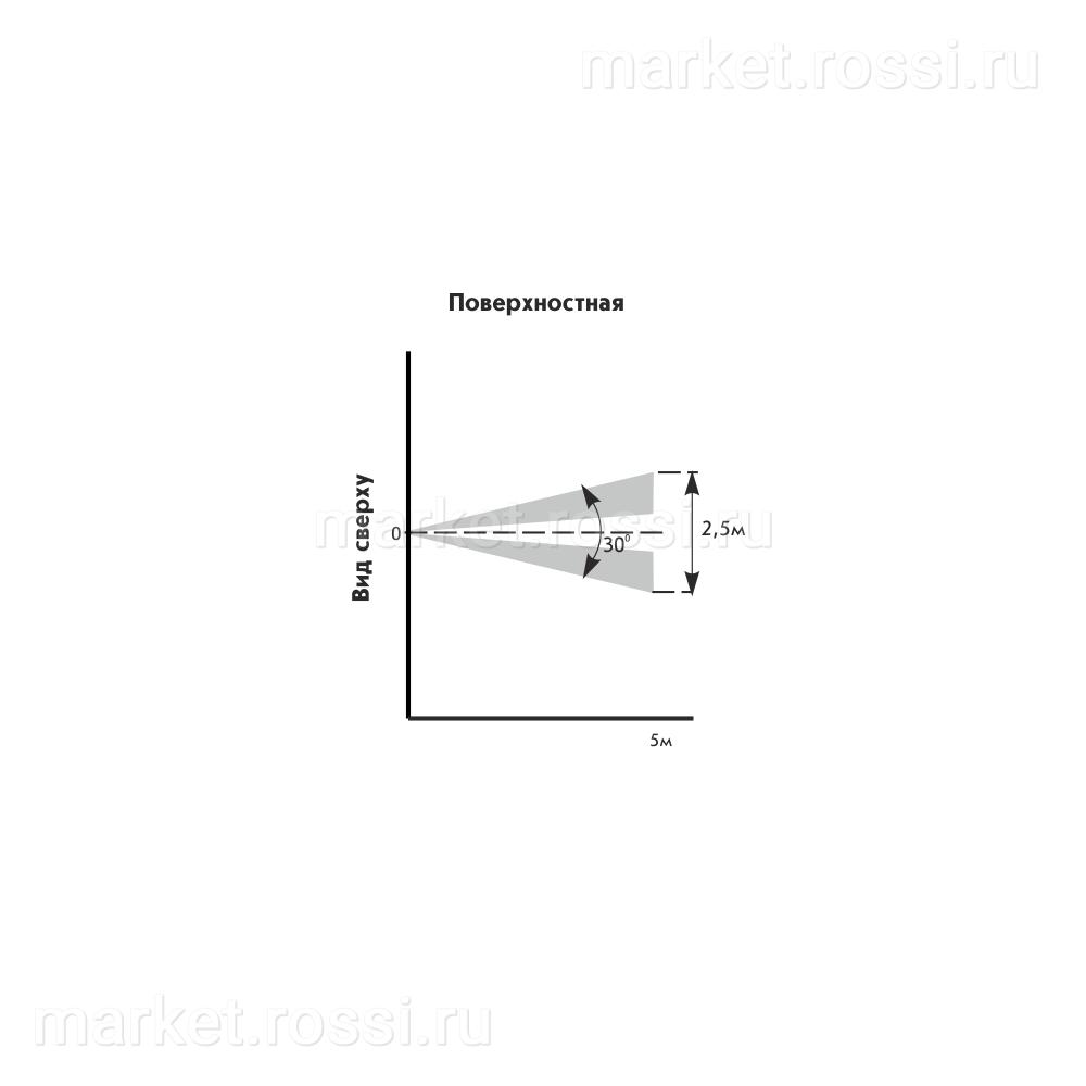 - - Угол зоны обнаружения в горизонтальной плоскости: 30°