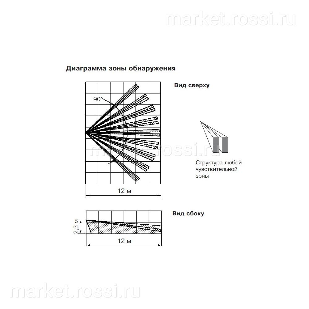 - - Угол обзора зоны обнаружения в горизонтальной плоскости 90°