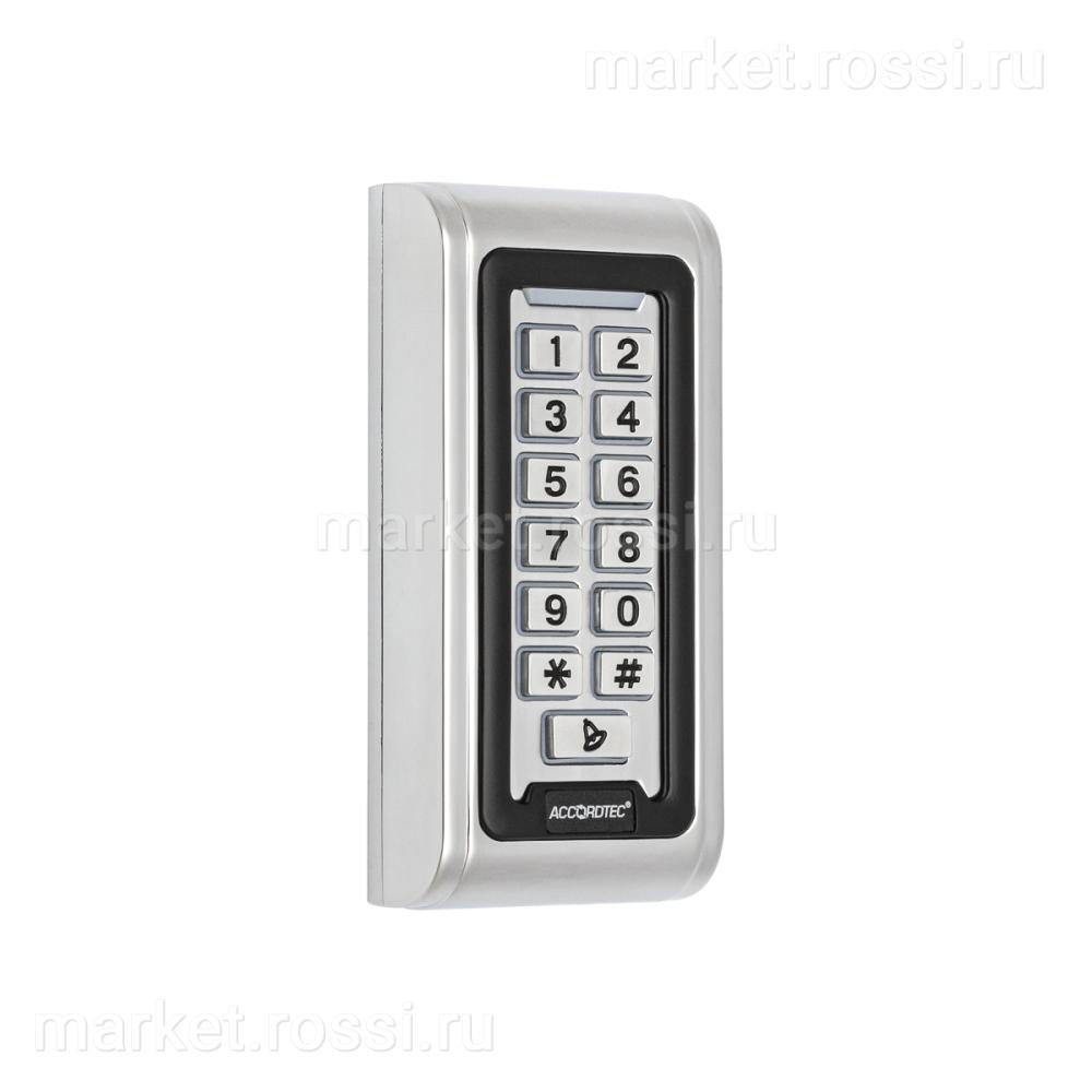 Кодонаборная панель со встроенным контроллером и считывателем карт Mifare с памятью до 2000 пользователей, с механическими кнопками, питание DC 12V, IP68, антивандальный корпус,материал-нержавеющая сталь, подсветка кнопок