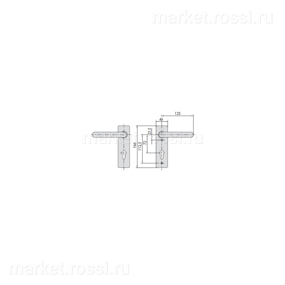 - Комплект ручек, под цилиндр, межосевое 72 мм