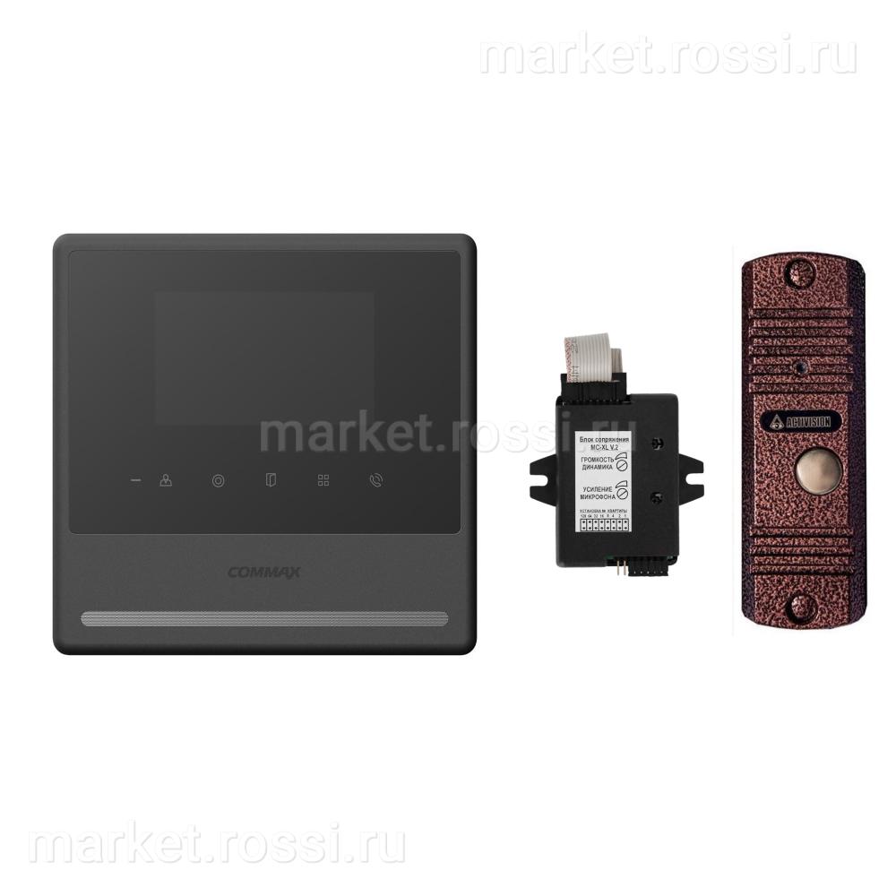 Комплект видеодомофона и вызывной панели COMMAX CDV-43Y (Черный) / AVC 305 (Медь) + Модуль XL Для цифрового подъездного домофона — это современное решение для вашего дома или офиса