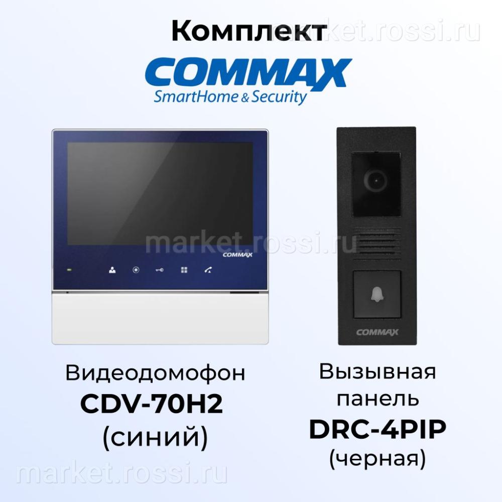Комплект видеодомофона и вызывной панели COMMAX CDV-70H2 (синий)/DRC-4PIP(черная) — это современное решение для вашего дома или офиса