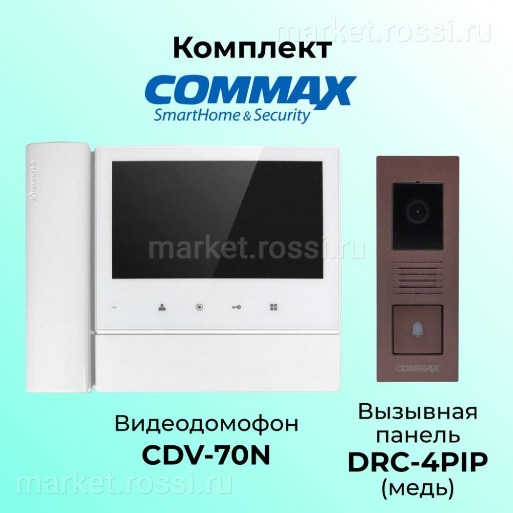 Комплект видеодомофона и вызывной панели COMMAX CDV-70N (белый)/DRC-4PIP(медь) — это современное решение для вашего дома или офиса