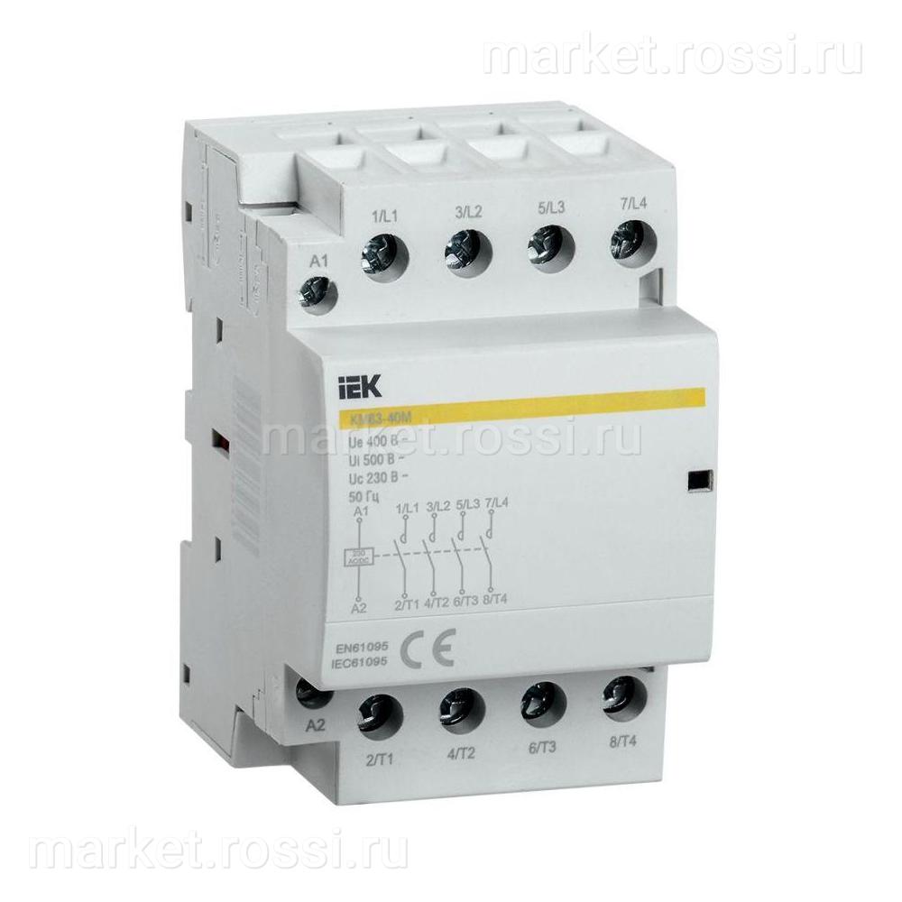 Контакторы модульные типа КМ торговой марки IEK предназначены для применения в сетях переменного тока напряжением до 400 В частоты 50 Гц и служат для коммутации слабоиндуктивных нагрузок с номинальным током до 63 А