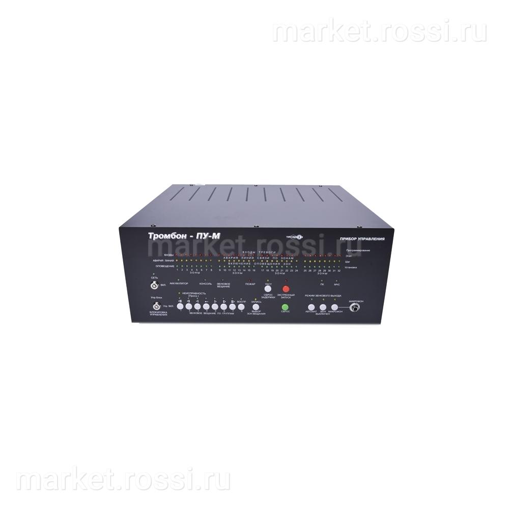Тромбон ПУ-М-32 ∙ Многозонный прибор управления техническими средствами оповещения и эвакуацией для СОУЭ 3, 4 и 5 типов; зон светового и звукового оповещения - 32; напряжение питания 220В 50Гц; Встроенные БП 12В и звуковой процессор на 8 р/с