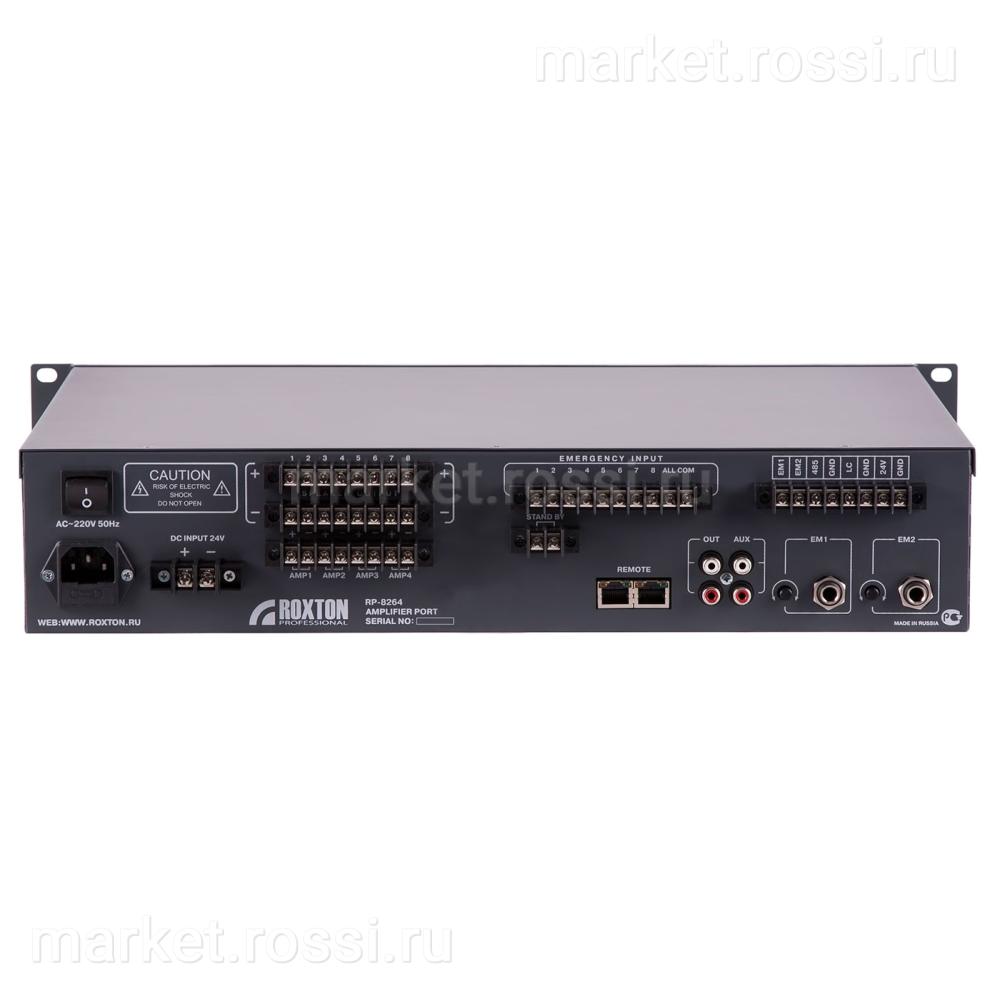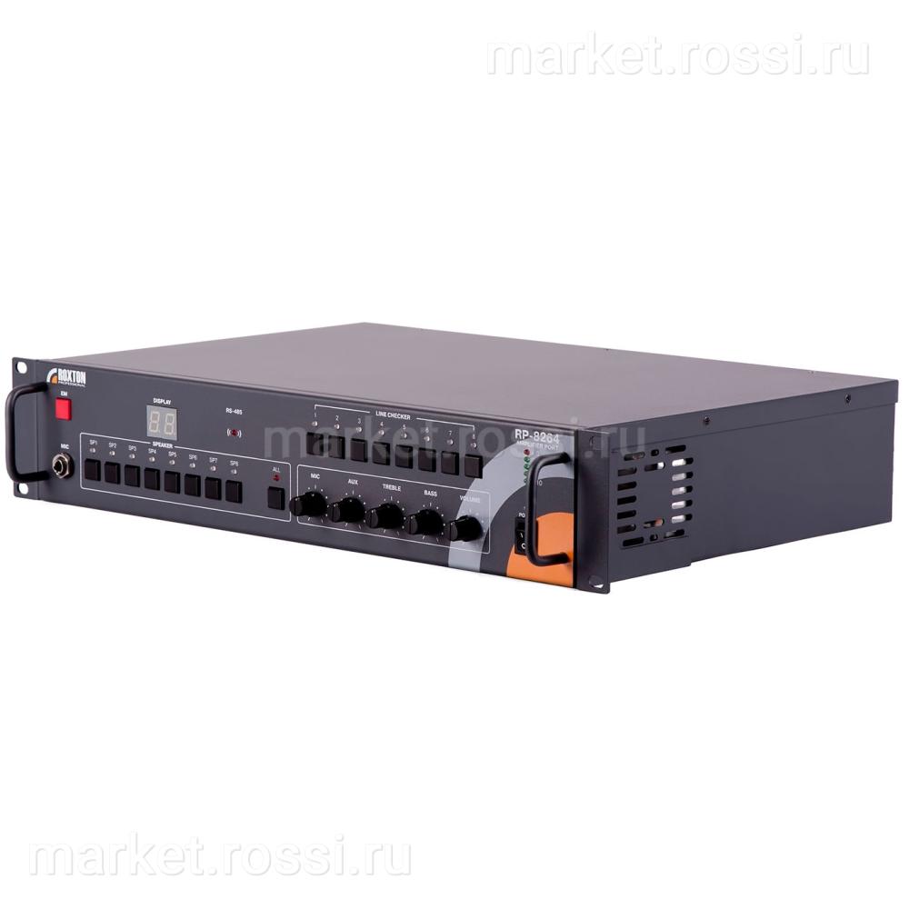 - Блок RP-8264 предусматривает обязательное использование внешних усилителей, суммарной мощностью до 2-х кВт, и может работать: