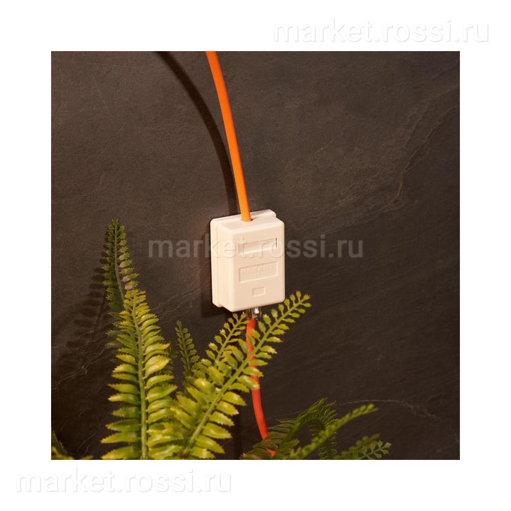 Монтаж осуществляется накладным способом на стену, что не требует специальных инструментов — подключение кабеля выполняется с помощью удобных зажимных контактов. Корпус из ударопрочного пластика обеспечивает долговечность и защиту по стандарту IP20.