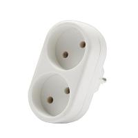 Ключевыми особенностями модели являются два штепсельных разъема стандарта SCHUKO без заземления, выполненные в классическом белом корпусе из полипропилена. Степень защиты IP20 указывает на предназначение для использования внутри помещений в нормальных условиях.