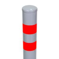 - Покрытие — порошковая краска серого цвета и две красные светоотражающие наклейки, которые позволяют заметить антипарковочный столбик даже в темное время суток