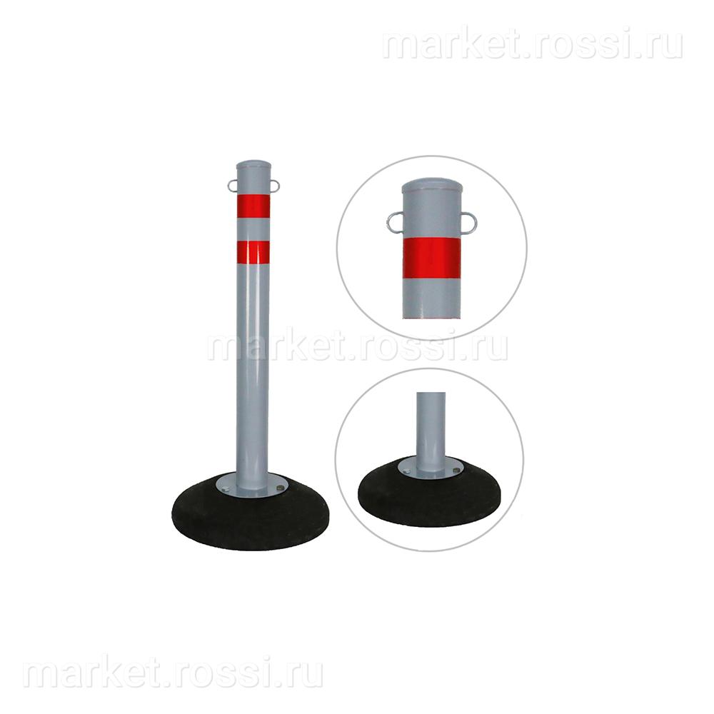- Покрытие — порошковая краска серого цвета и две красные светоотражающие наклейки, которые позволяют заметить антипарковочный столбик даже в темное время суток