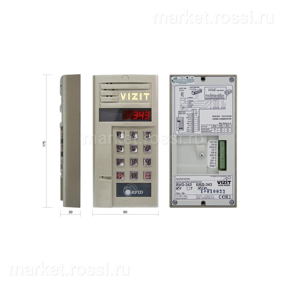 - Вызывная видеопанель БВД-343FCPL производства компании VIZIT по цене 9 621,00 ₽ (6 800,00 ₽ для оптовых поставок) с быстрой доставкой по Москве и в любой город России от интернет-магазина Market-Rossi