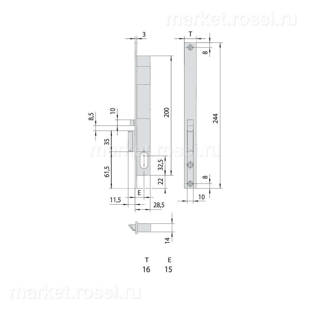 - Запорная защелка имеет противоотжимный блокировочный механизм при закрытом состоянии замка