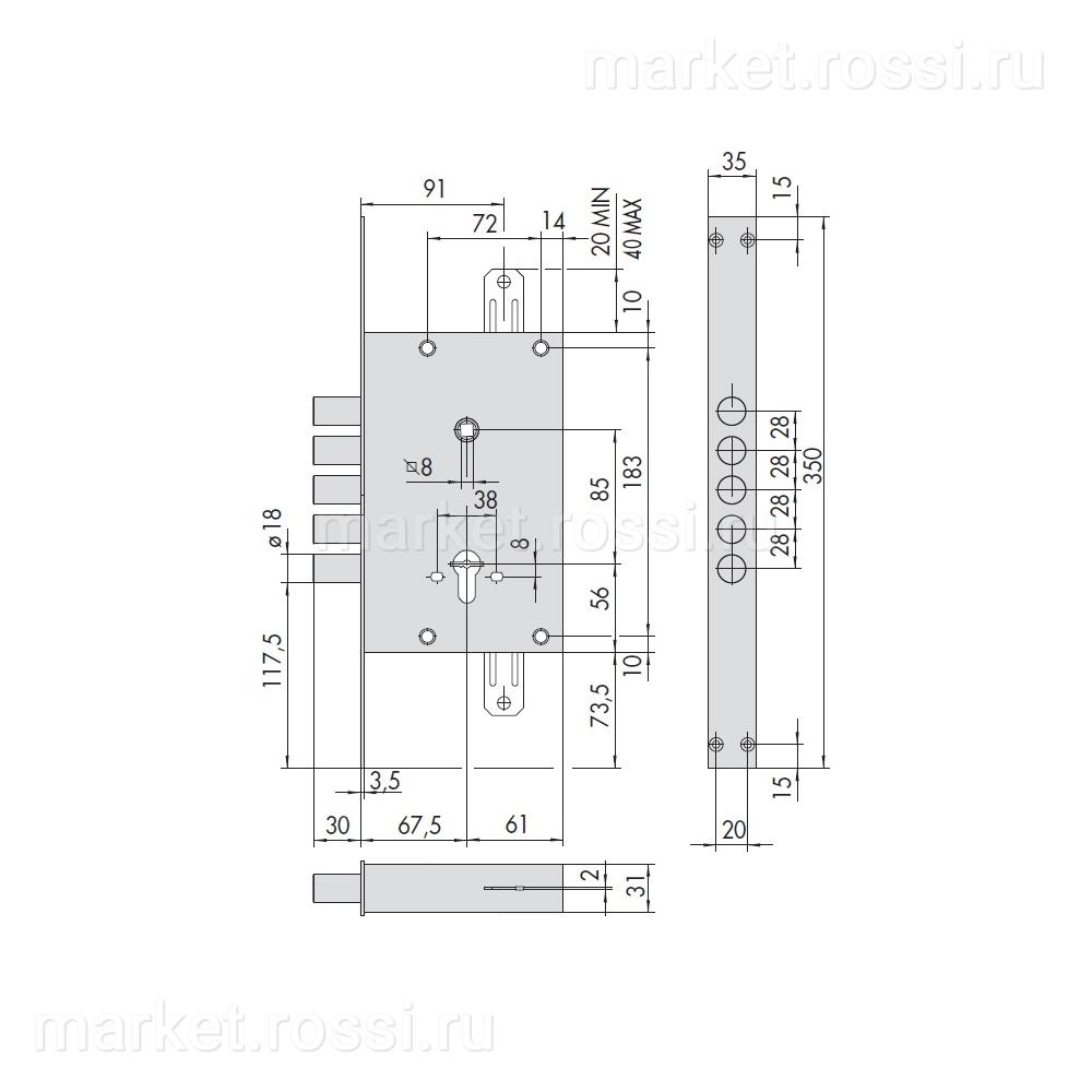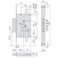 - 0 Замок врезной цилиндровый Locking Line, 2 оборота, 5 ригелей, б/с 62мм