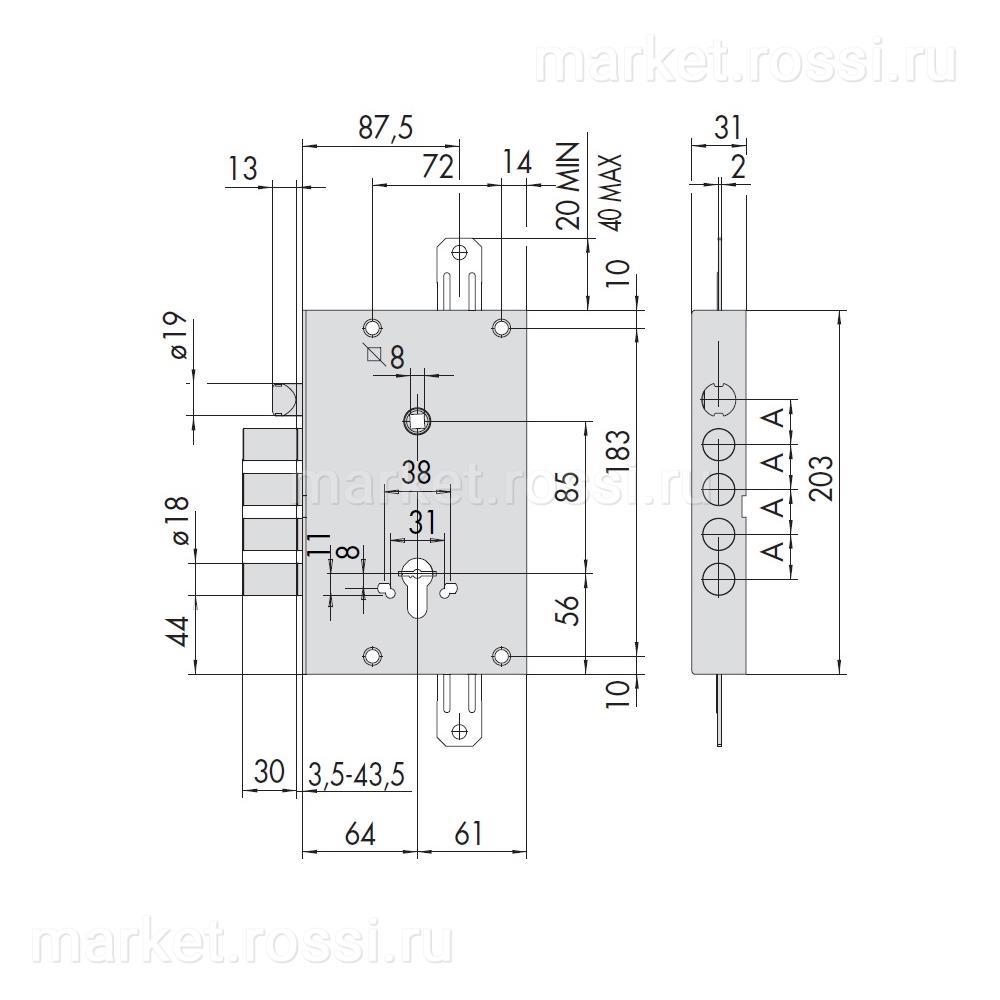 - 0 ЗАМОК ВРЕЗНОЙ ЦИЛИНДРОВЫЙ МЕХАНИЧЕСКИЙ